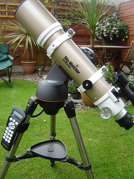 | (Right) Skywatcher 80ED Pro with Celestron SLT GoTo mount. | |